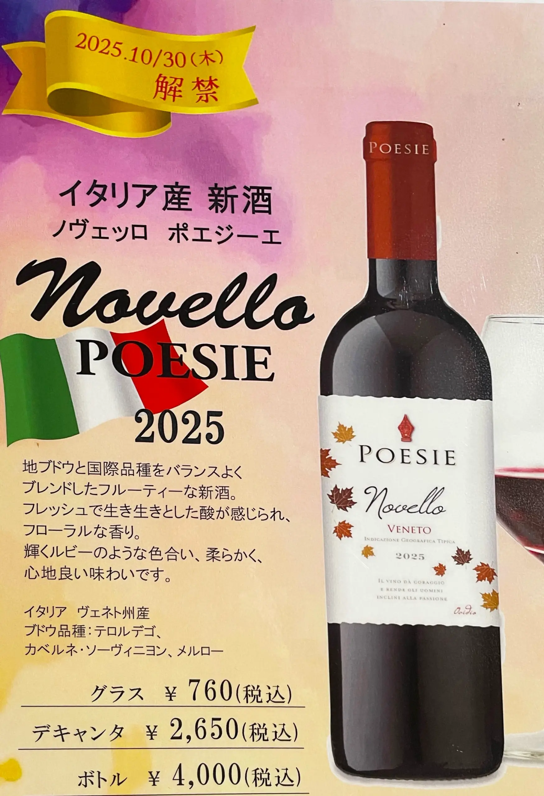 この度、「ノヴェッロ ポエジーエ」が今年もイタリア・ヴェネトから届きました。