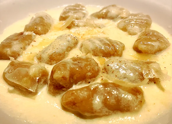 ~ポルペッティーニ、帆立のコンフィジェノベーゼ、サーモンのリエットキャビア添え~